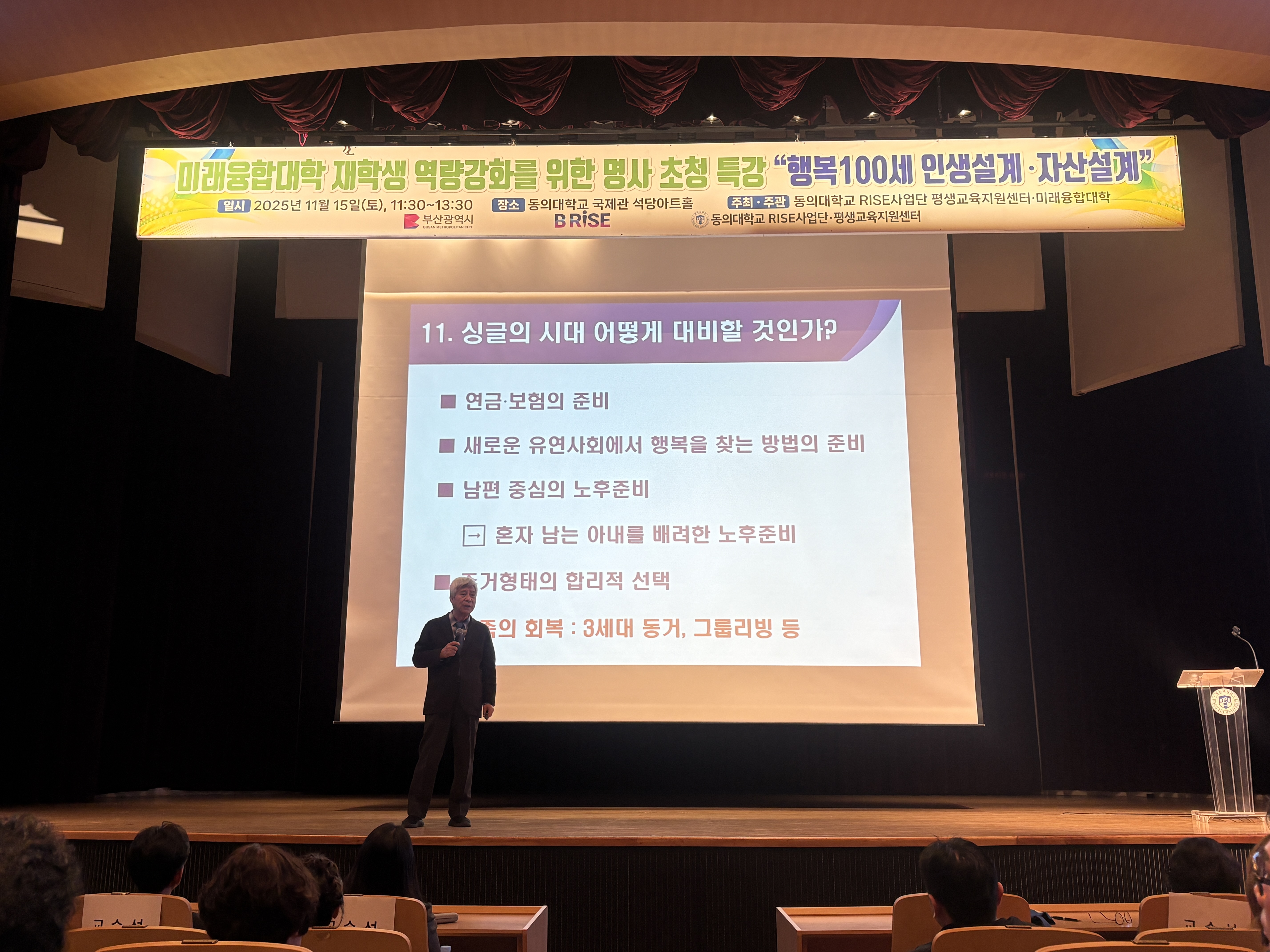 동의대학교 미래융합대학, 강창희 대표 초청 '행복 100세 인생설계' 역량강화 특강 성료