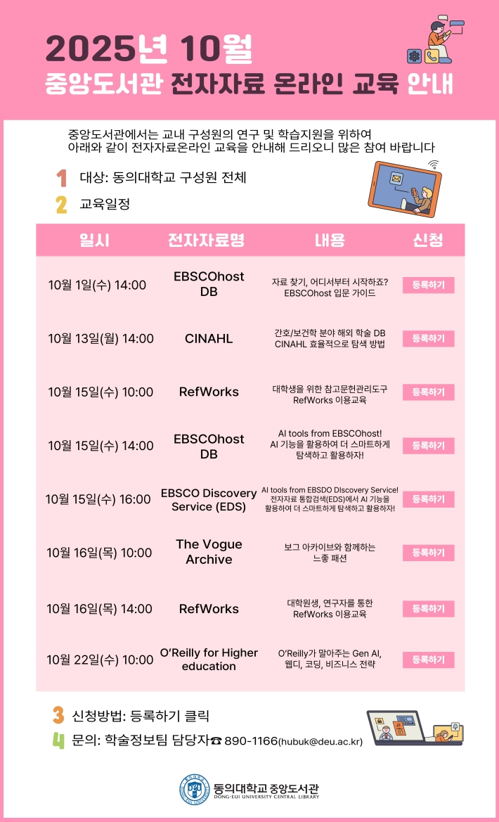 2025년 10월 중앙도서관 전자자료 온라인 교육 안내