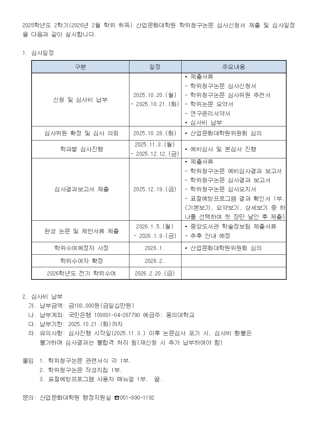 2025학년도 2학기 학위청구논문 심사신청서 제출 및 심사일정 안내