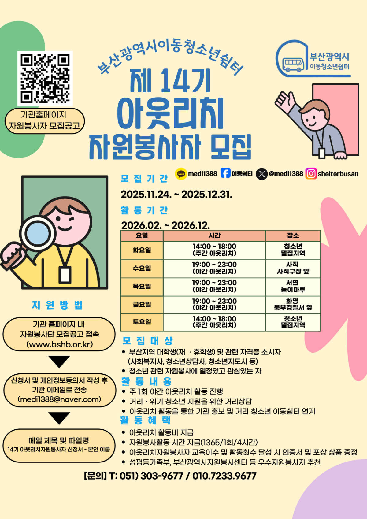[안내]부산광역시이동청소년쉼터 14기 아웃리치자원봉사단 모집
