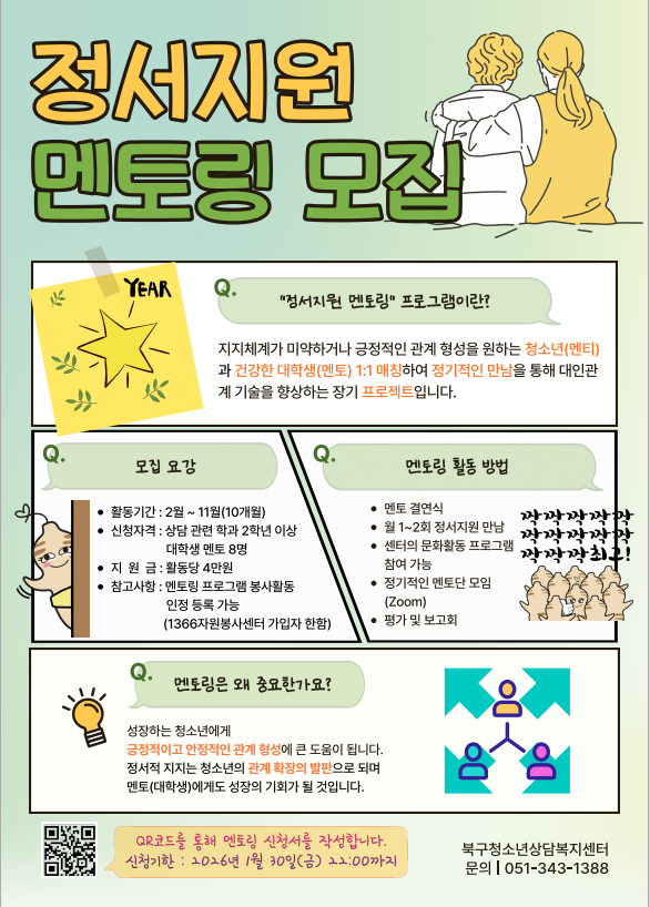 [안내] 부산 북구청소년상담복지센터 정서지원 멘토링 모집