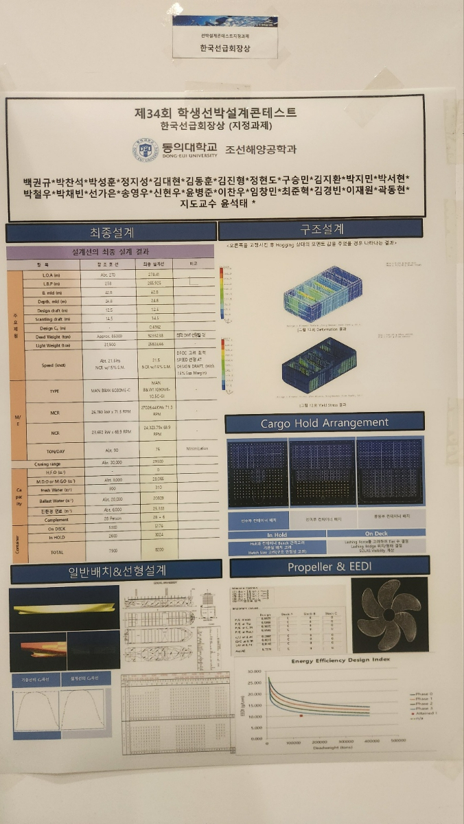 동의대학교 조선해양공학과 백권규 외 23명의 학생들이 2025년 대한조선학회가 주최한 "제34회 학생 선박설계 콘테스트"에서 한국선급 회장상을 수상했습니다.