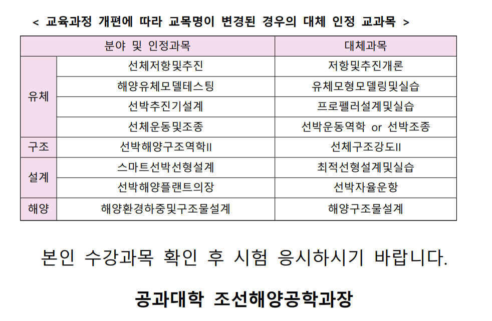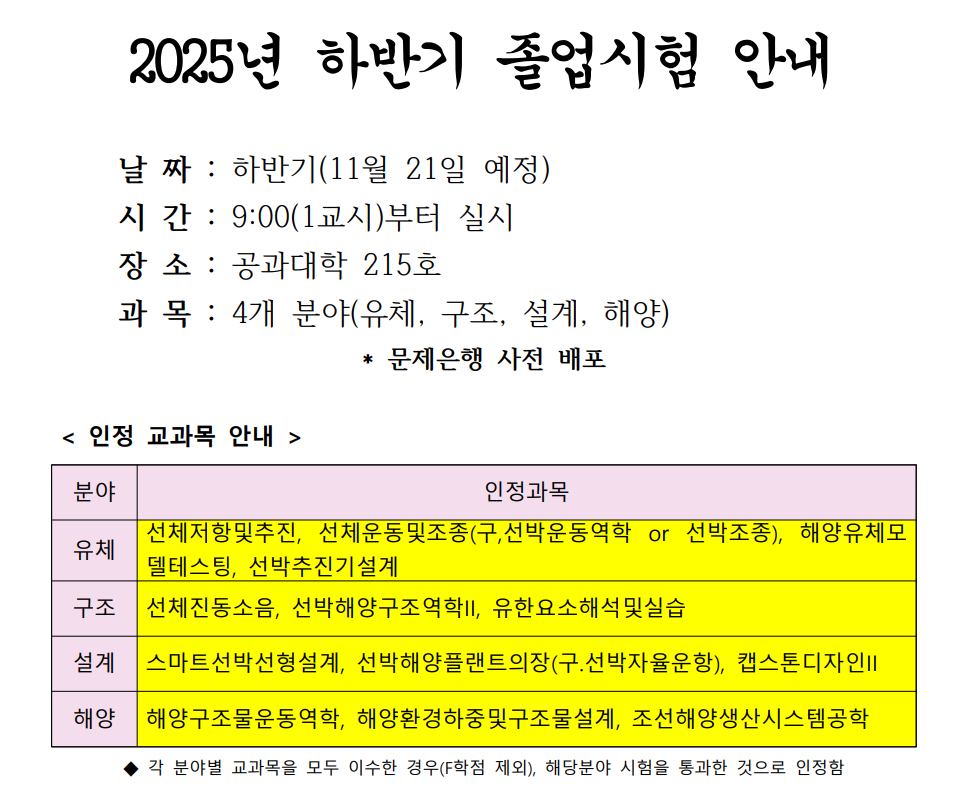 2025학년도 2학기 하반기 조선해양공학과 졸업시험 안내 및 문제은행 배포