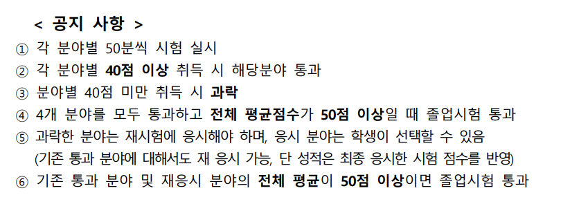 안내 1) 졸업시험 응시과목 및 대체과목 안내