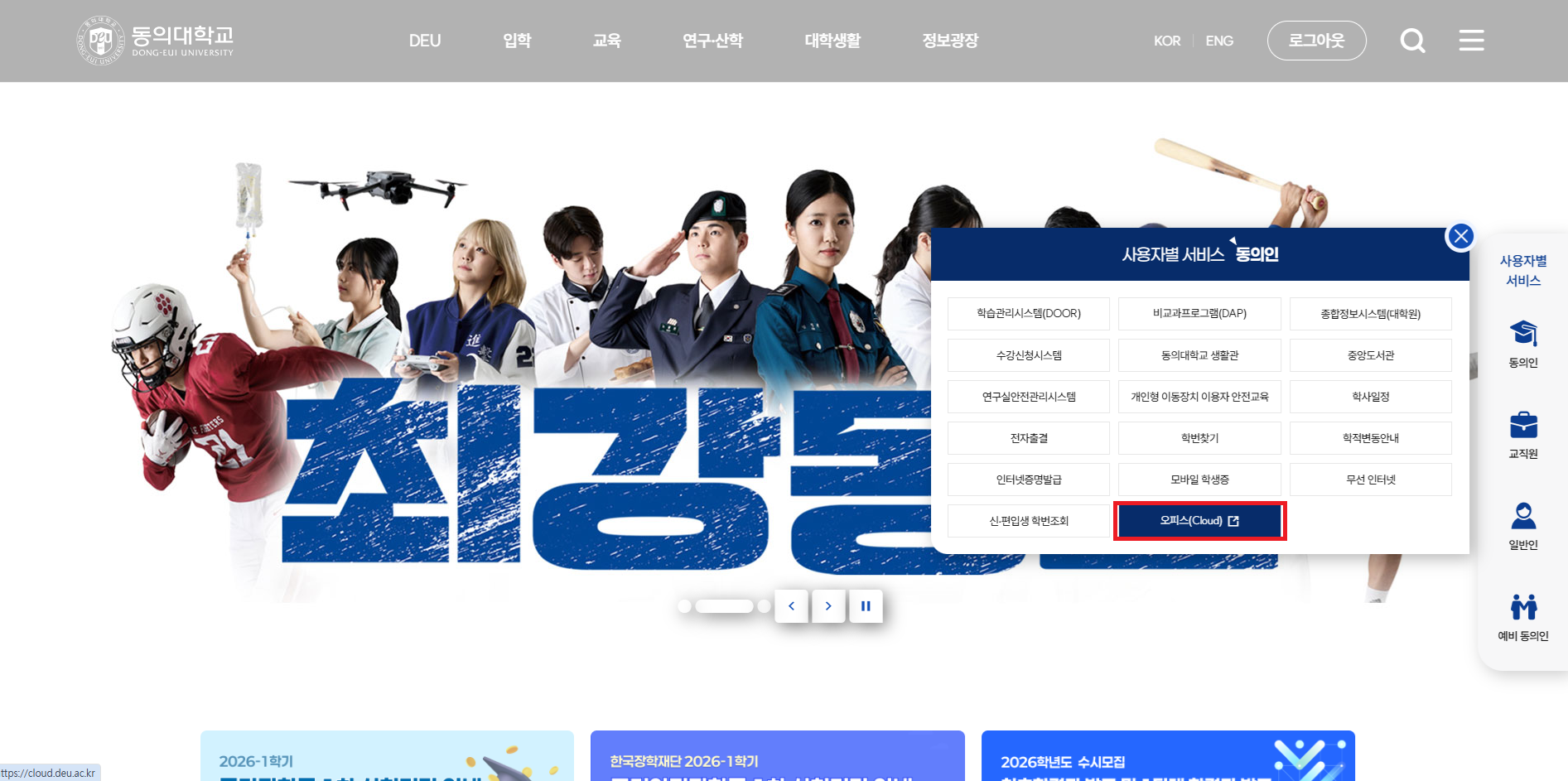 1. 동의대학교 홈페이지 - 동의인 - 오피스(Cloud) 접속