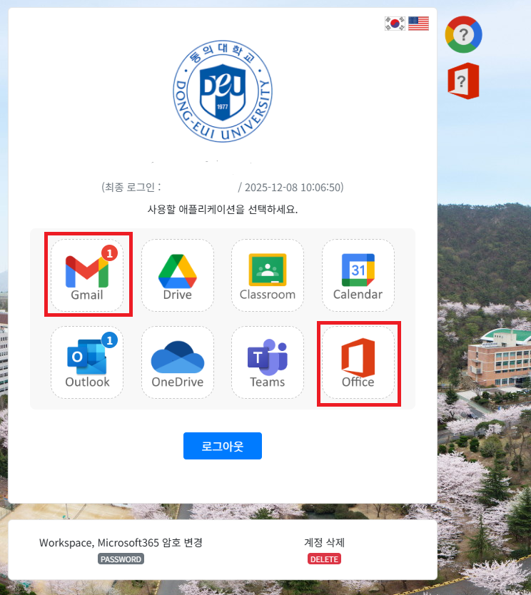 ms-office 계정 도메인: @office.deu.ac.kr