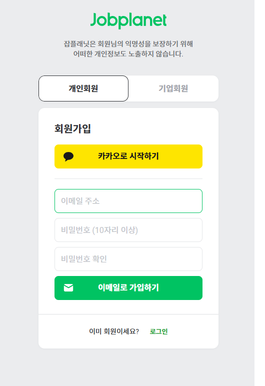 3. 잡플래닛 접속 - 이메일로 가입하기 (반드시 Gmail 계정 도메인 @g.deu.ac.kr 또는 ms-office 계정 도메인 @office.deu.ac.kr으로 가입해야 합니다.)
