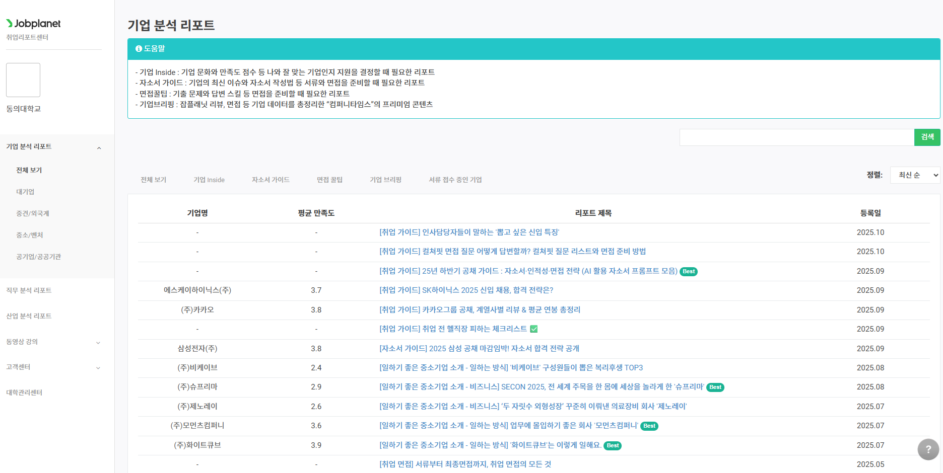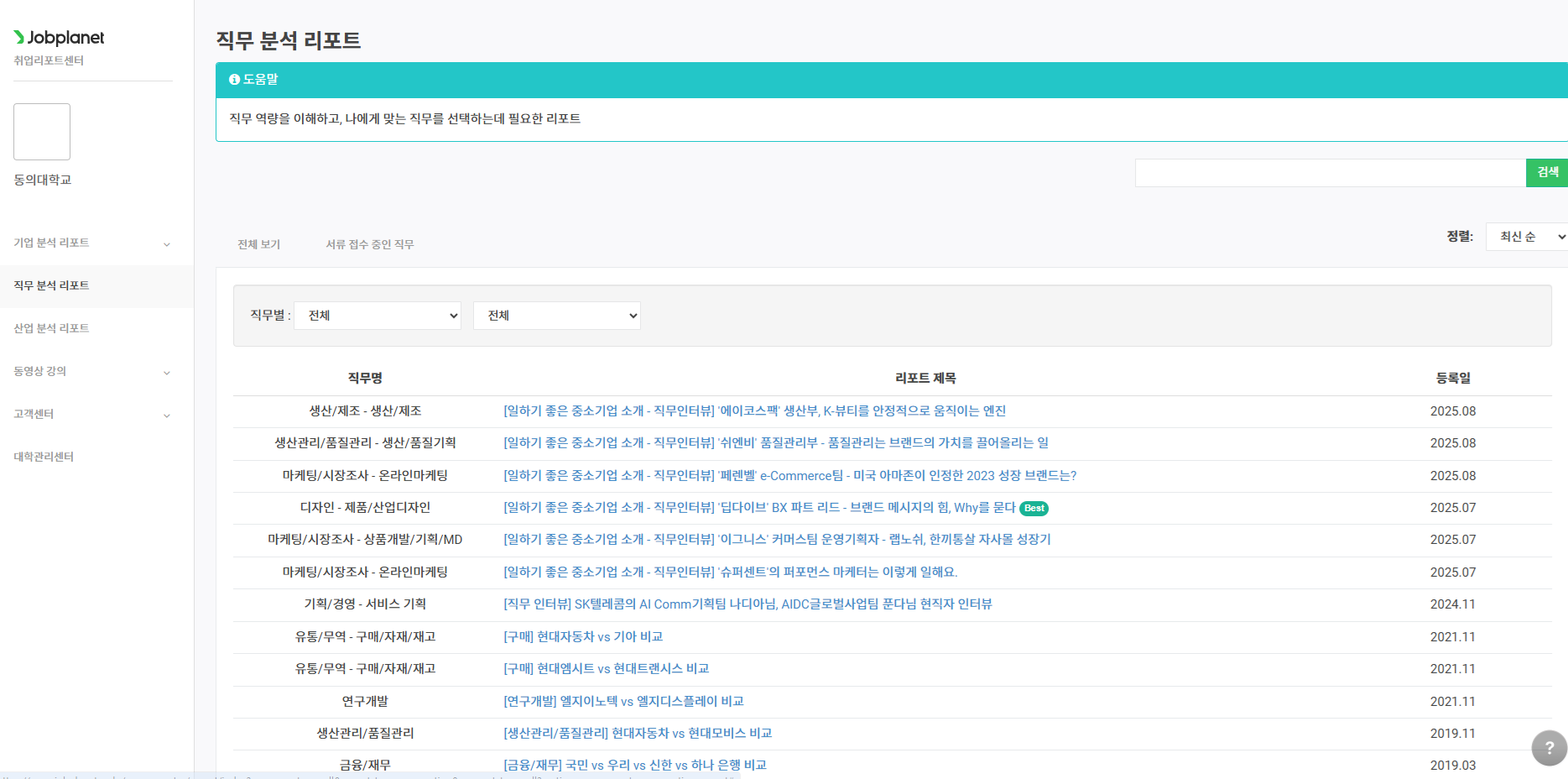 동의대학교 대학일자리플러스센터에서 잡플래닛과 제휴를 맺었습니다.